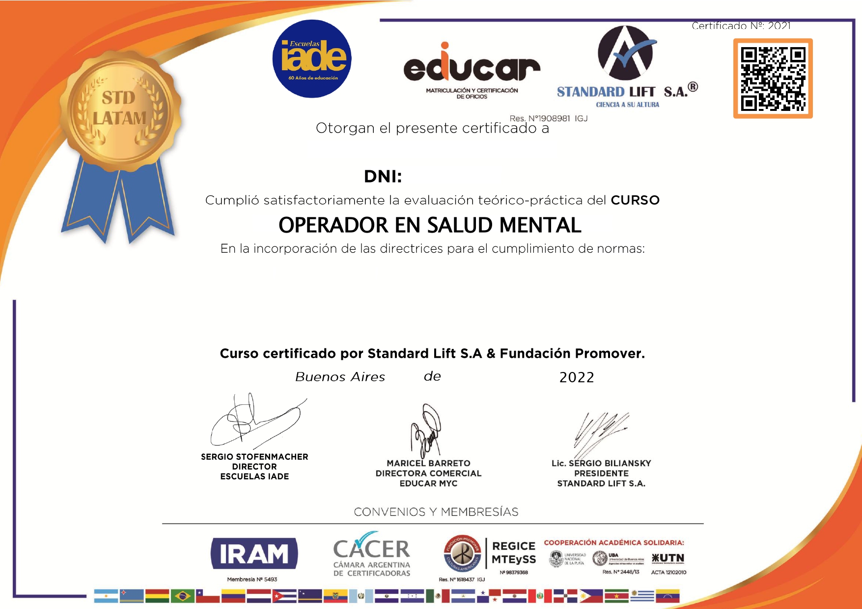 Certificaciones al finalizar Operador en Psicologia Social Brindadas por Escuelas IADE e IFOC GROUP: